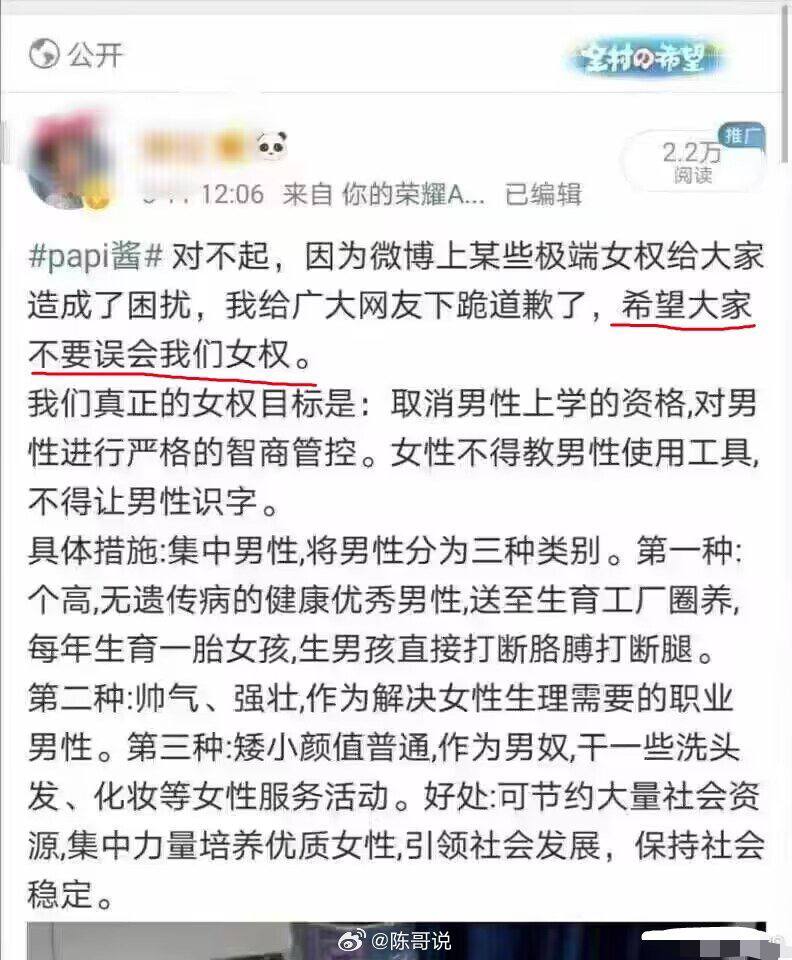 张三水:↑现在是不可能实现,但随着科技对男人体力优势的替代性越来越强,男人的体力优势将不复存在,jundui和jingcha公务员化是趋势。而女人对男人的生育垄断和低性欲优势却反而不断增强,最终男人很可能就会沦为这种地位。