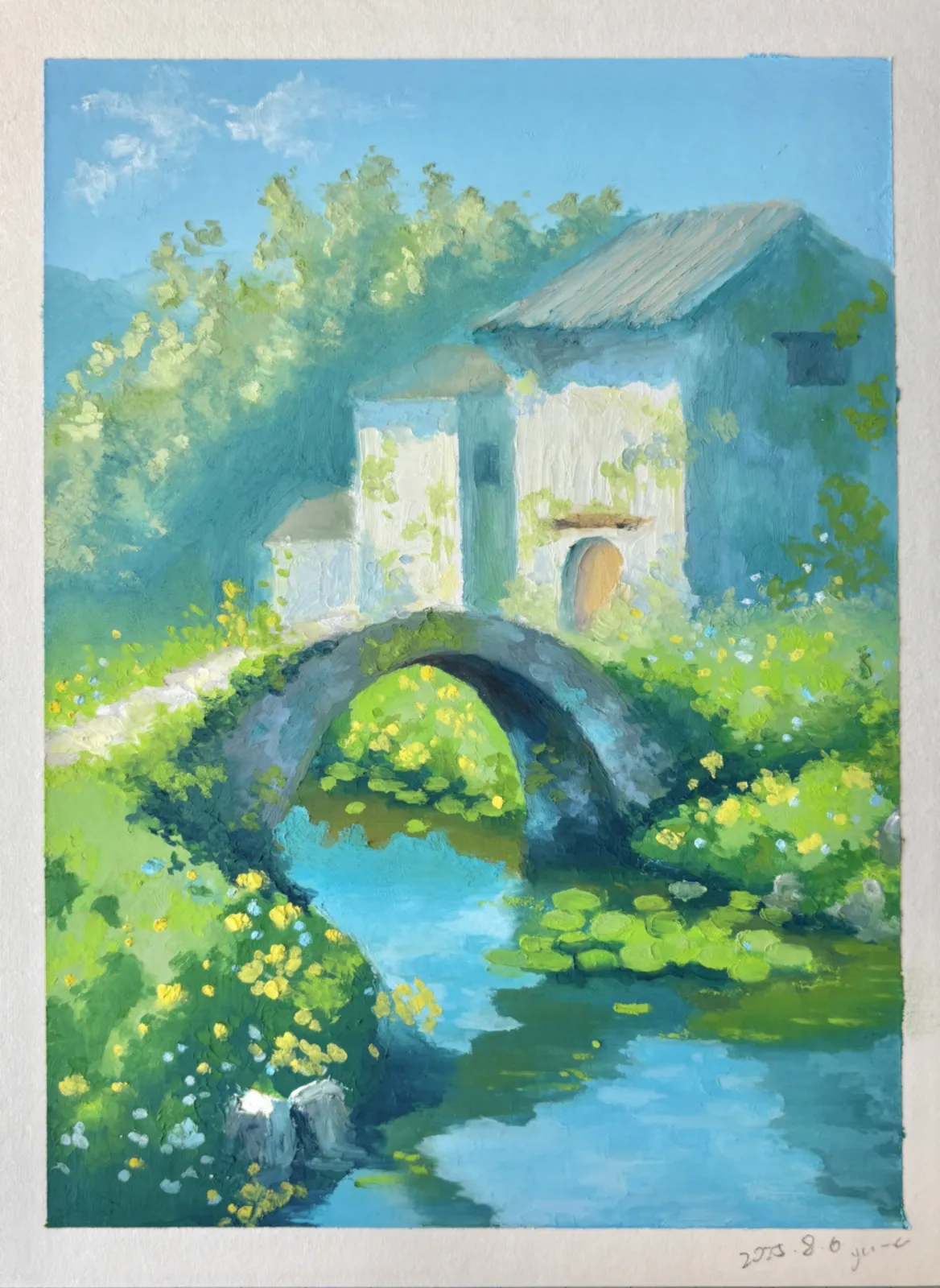 今天试了新的画法,不画细节也不用刮刀,画面看起来会柔和一点。