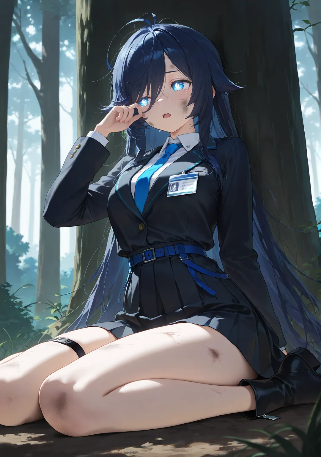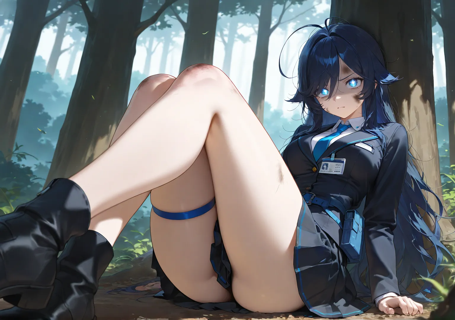 高挑的身材在林间不断穿梭,但却显得十分狼狈。低垂的树枝刮过了她的脸颊,坚硬的靴底在湿润的泥土上留下一个个沉重的脚印。