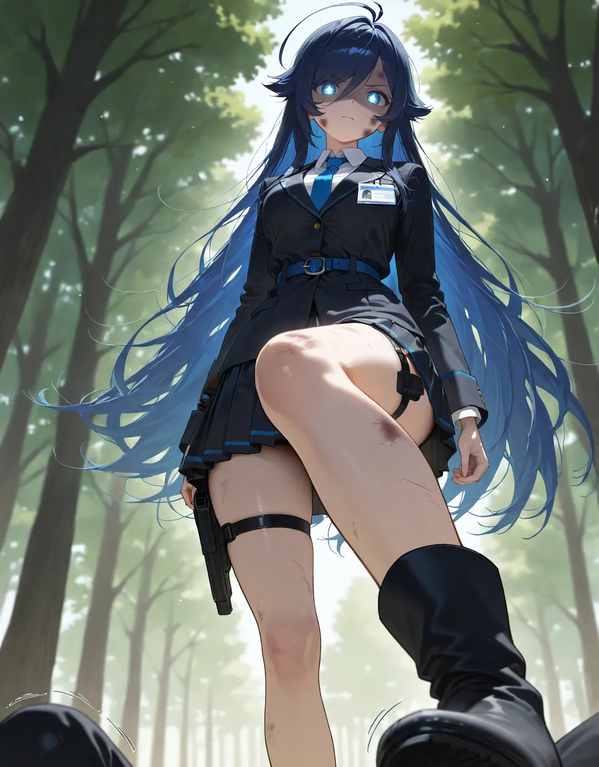 黑色百褶裙的裙摆瞬间扬起,那条包裹在裙下的修长玉腿,展露出优美的肌肉线条。