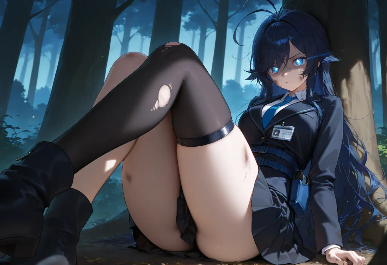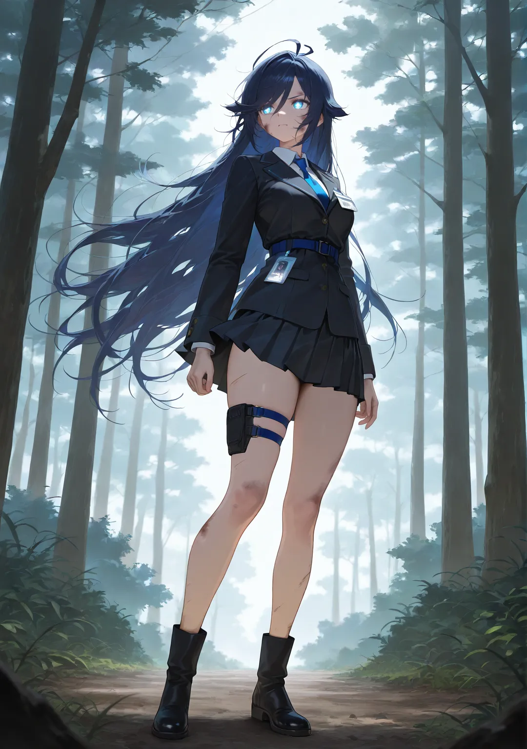 高挑的身材在林间不断穿梭,但却显得十分狼狈。低垂的树枝刮过了她的脸颊,坚硬的靴底在湿润的泥土上留下一个个沉重的脚印。