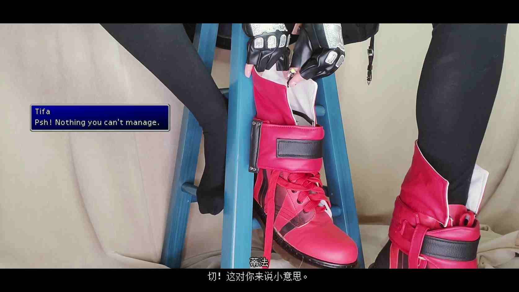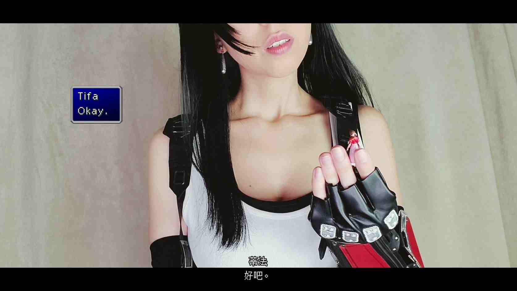 这个是蒂法cosPLAY场景的巨大娘,角色装扮非常够味,而且也字幕还原了游戏的感觉,全场采用的字幕的方式,这个汉化时候给我整麻烦坏了,这个后面念念碎的时候说,不过终于还是汉化好了,蒂法赛高!
