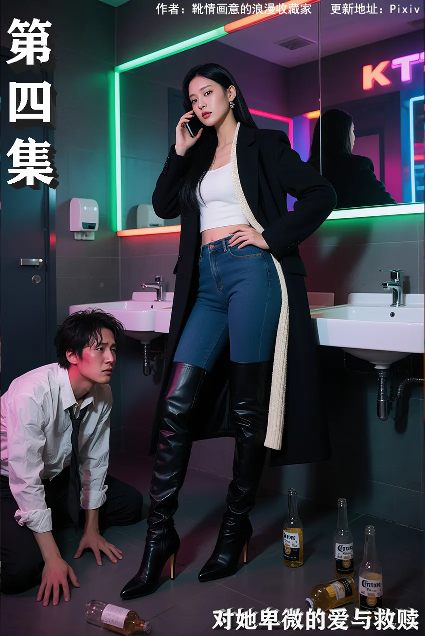 长靴的靴跟在地面上轻轻一转,发出清脆的 “咔哒” 声,像是一记轻锤,敲在这尴尬又微妙的氛围里。只见她微微俯下身,伸出手来扶我,那长靴的靴筒几乎擦到了我的手臂,皮革的质感和她身上淡淡的香水味交织在一起,让我愈发窘迫,却又有些莫名的心动 。