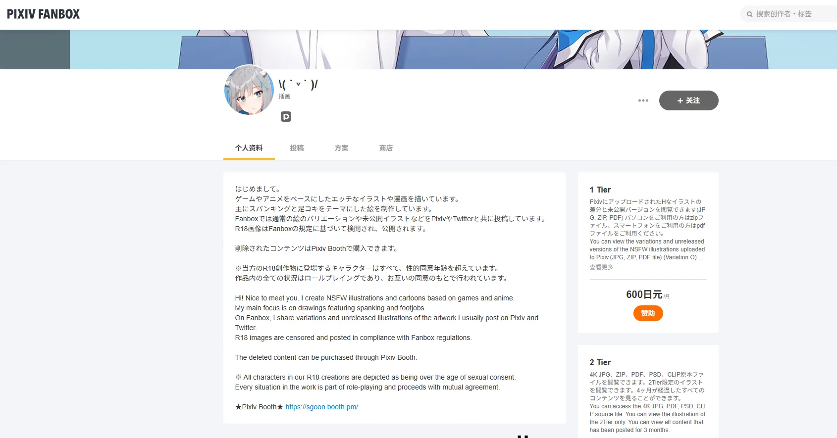 求一个pixivfanbox叫 \( ˙▿˙ )/的作者的作品