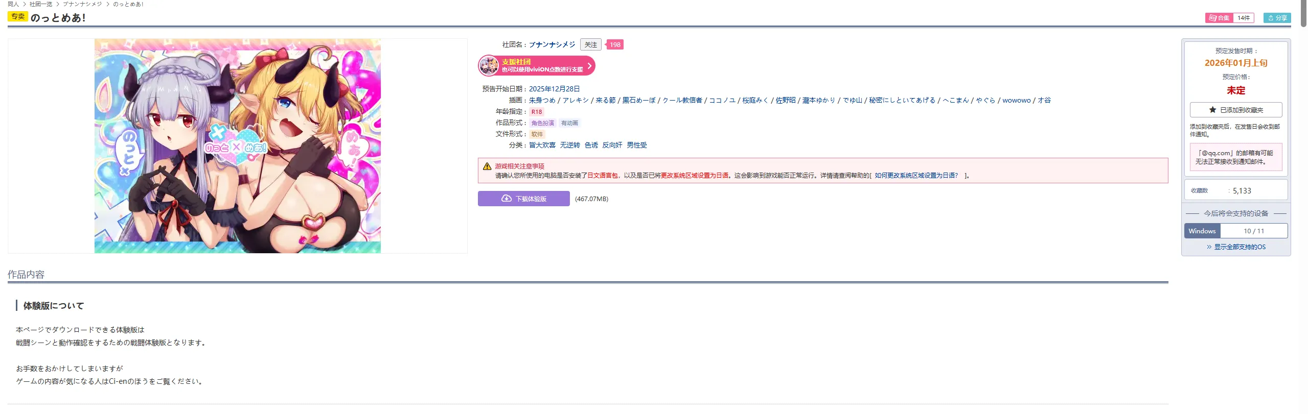 预计本月10日发售的のっとめあ!完整体验版(4.11G)