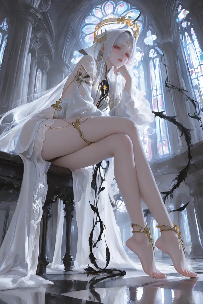 神女玄玉抬起左脚,纤细的脚踝上缠绕着一条银色的链条,上面挂着几颗精致的小银铃,随着她的动作发出清脆的响声。