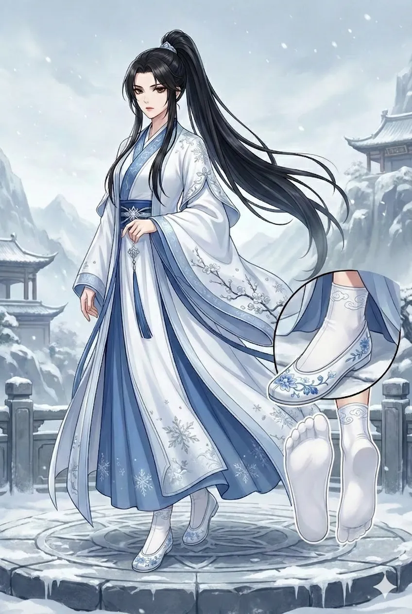 “妈的,怎么回...”骂骂咧咧的话还没说全,面前绝美的女子便抬起了脚。动作很慢,像是在有意让他看清细节。一尘不染的绣鞋悬在他面前,隐约传来淡淡的香气;盈盈一握的足踝被雪白罗袜包裹着,袜口绣着精致的云纹。
